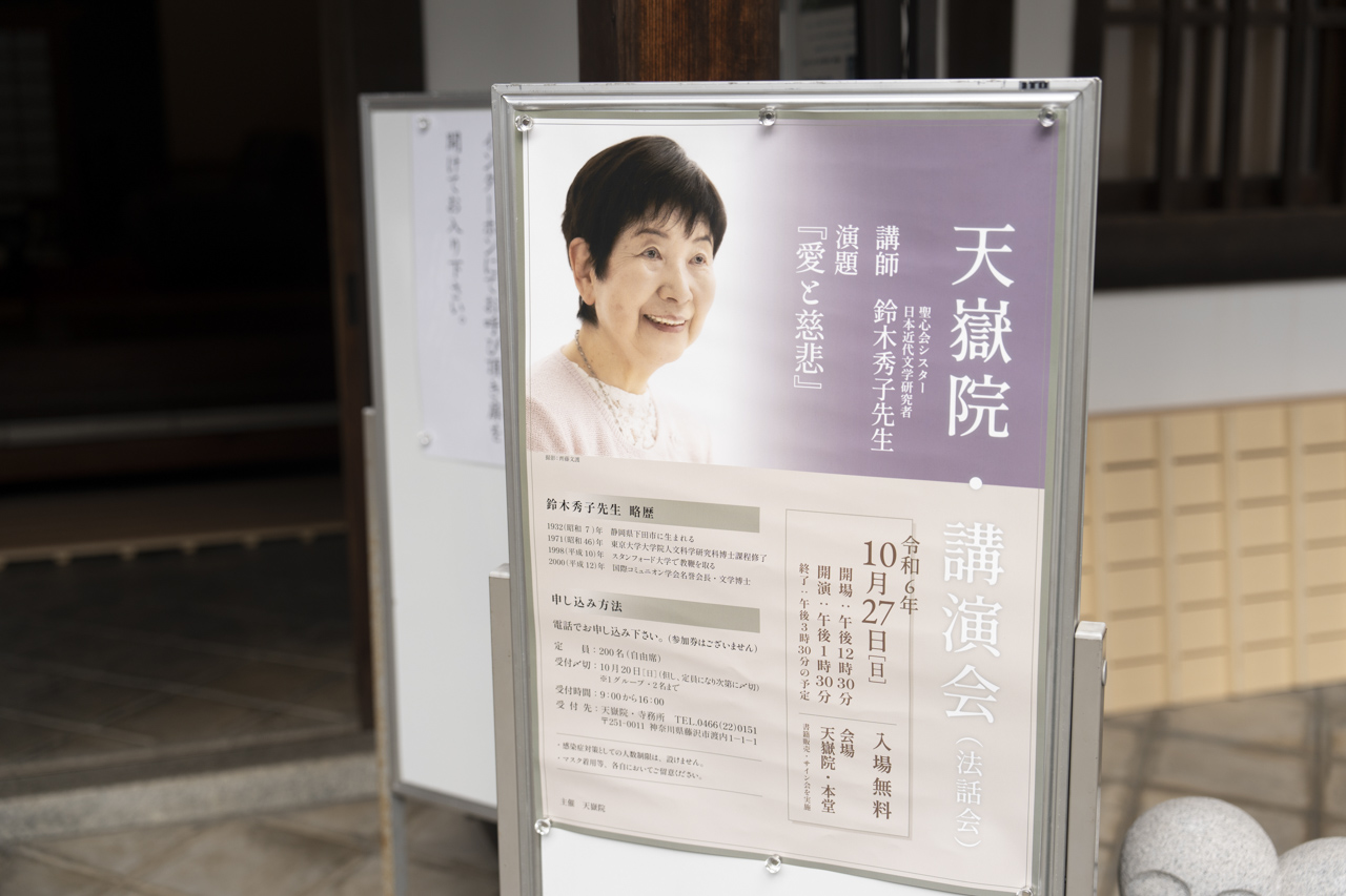 少し秋の風情が感じられるようになった中、10月27日(日) 、聖心会シスター・鈴木秀子先生をお招きして、本年の天嶽院・講演会を無事に終了することができました。