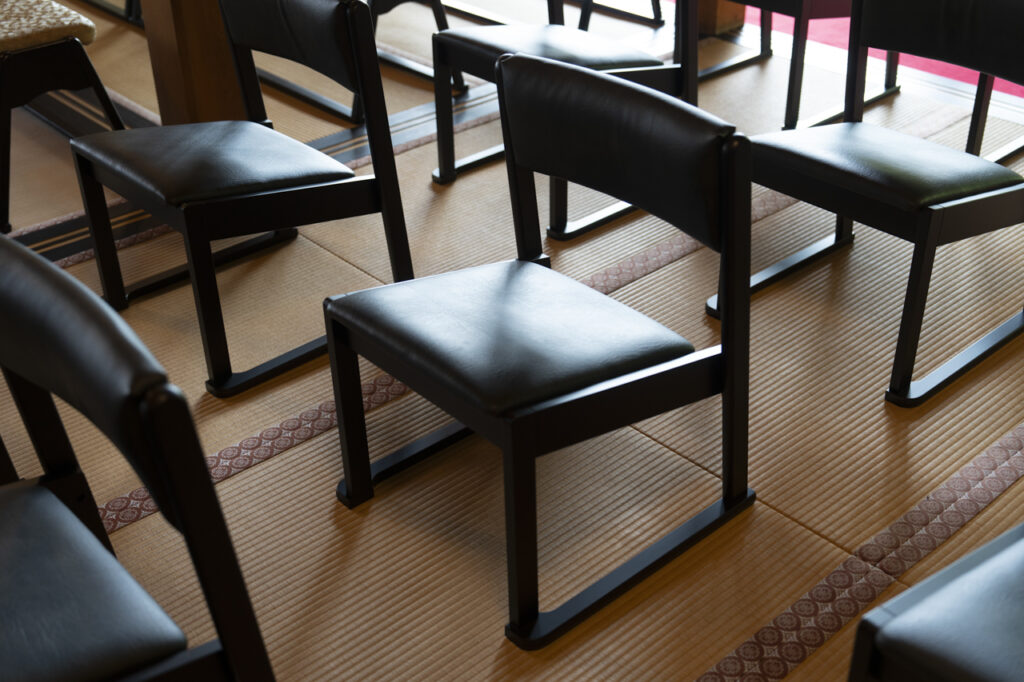 板橋禅師(元總持寺貫首)考案の坐禅椅子。新たに100脚を新調しました。