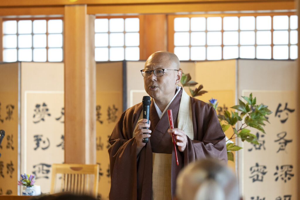 いよいよ先生がいらっしゃいます。その前に住職からもご挨拶。