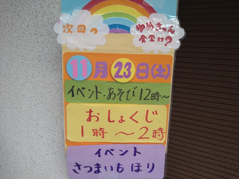10月26日(土)たくさんの親子連れの方々の参加がありました。今回はハロウィンの会ということで、子供たちはボランティアの方々とジャンケンをしたり、輪投げゲームをしたりしながら、お菓子などの景品ををたくさんいただいてました。また、フリーマッケットも行われていました。今回もボランティアの方々からの差し入れの品々、手作り弁当の配布、豚汁のおふるまいもあり、広域避難場所ではたくさんの方がお食事をされてました。次回は11月23日(土)です。「ゆめちゃんの会」は村岡子育て応援隊の運営です。お問い合わせは「ゆめちゃんの会」070-3315-2419です。