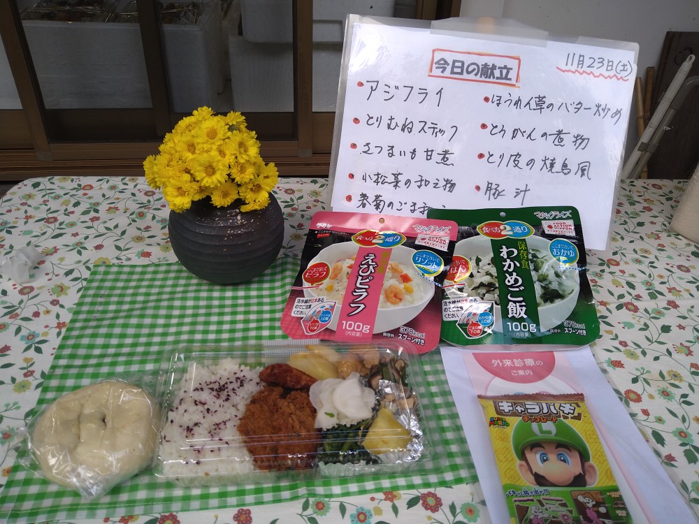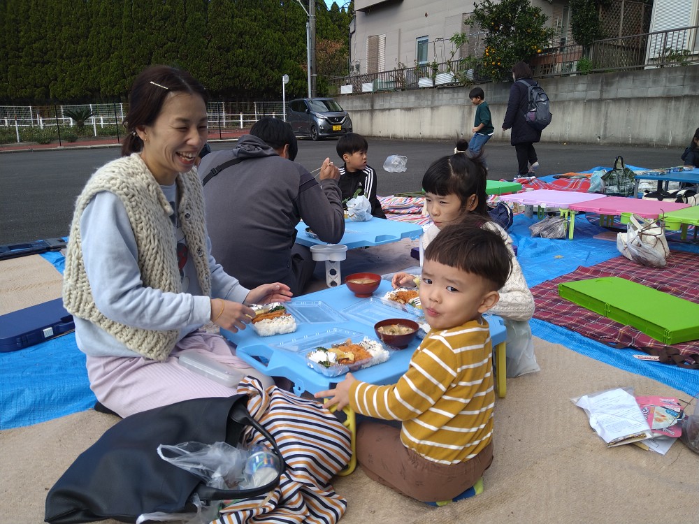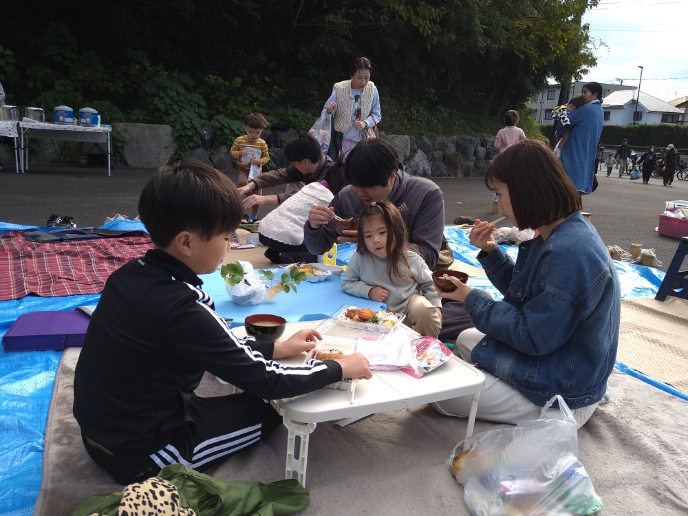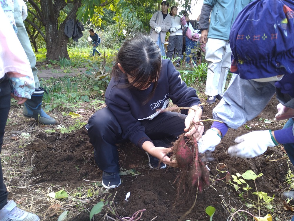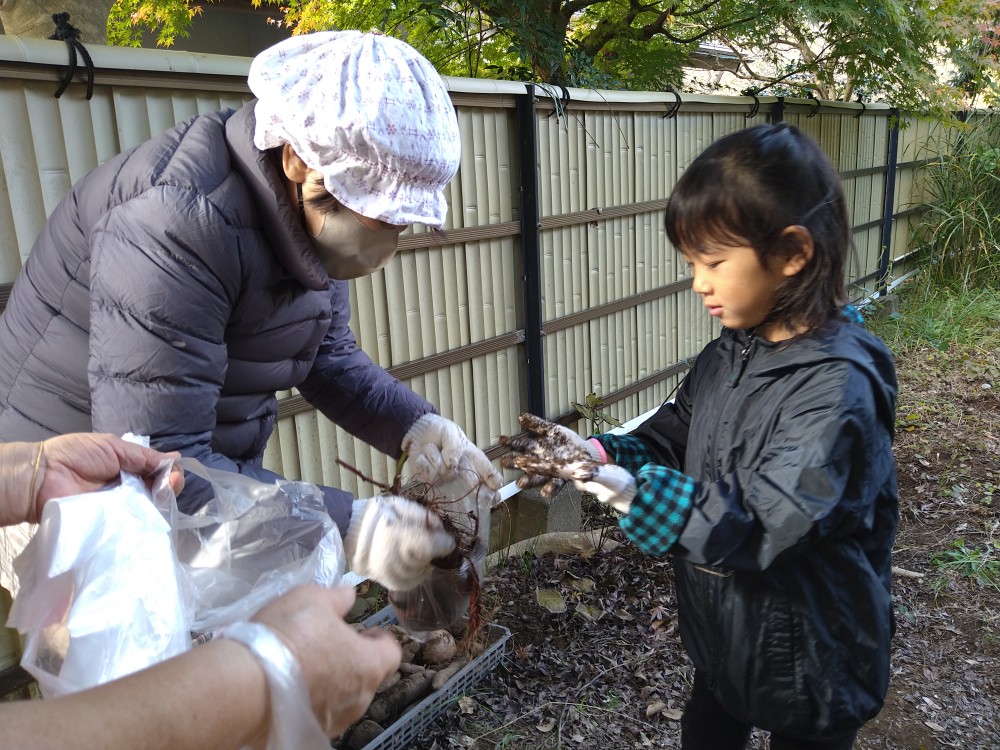 11月23日(土)冬の気配を感じる中、たくさんの親子連れの方々の参加がありました。今回は春に植えたさつま芋の収穫・芋掘り体験の会でした。ボランティアの方に手伝っていただきながら1人づつ芋掘りを行いました。1本のつるにたくさんのお芋がついていたり、大きく立派なお芋だったりそれぞれに楽しまれていました。広域避難場所では、竹ぽっくりで遊ぶ子供たちがいたり、フリーマーケットも開催されていました。今回もボランティアの方々からの差し入れの品々、手作り弁当の配布、豚汁のおふるまいもあり、寒い中とてもありがたい温かい豚汁とお弁当を召し上がっていました。次回は12月21日(土)クリスマス会です。「ゆめちゃんの会」は村岡子育て応援隊の運営です。お問い合わせは「ゆめちゃんの会」070-3315-2419です。
