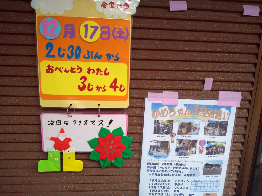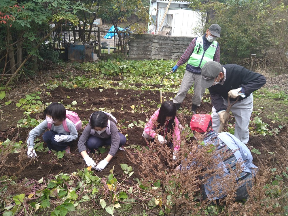 11月26日(土)いつ雨が降ってもおかしくない天気の中、たくさんの親子連れの方々の参加がありました。今回はボランティアの方々が丹精込めて育てられたさつま芋の芋掘りの体験がありました。子供たちは、ボランティアの方に手伝いをいただき自分で掘ったお芋をお持ち帰りになりました。また、竹ぽっくり、羽子板で遊んだり、紙芝居を楽しまれたり、盛りだくさんの催しでした。今回もたくさんの差し入れの品々やお弁当の配布がありました。次回は12月17日(土)クリスマス会です。「ゆめちゃんの会」は村岡子育て応援隊の運営です。