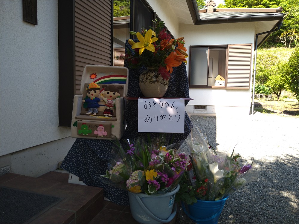 5月28日(土)に開催されたゆめちゃん食堂は、5月とは思えないほどの暑さの中、たくさんの親子連れの方々でにぎわいました。今回は父の日が間近ということで子供達からお父様へのプレゼントの花束が用意されました。また、ボランティアの方々からの差し入れの品々や手作り弁当などの配布もありました。今回は子供達がボランティアの方にお手伝いをいただきながら畑にさつま芋の苗を植えました。秋の収穫が楽しみですね。また、天嶽院広域避難場所では、子供達がボランティアの方の手作り水鉄砲で遊んでいました。次回は6月25日(土)です。「ゆめちゃんの会」は村岡子育て応援隊の運営です。