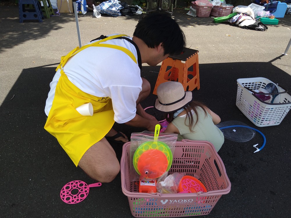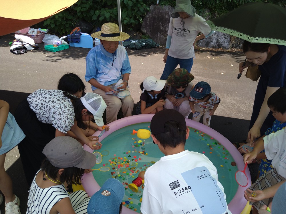 7月27日(土)猛暑の中にもかかわらず、たくさんの親子連れの方々の参加がありました。今回は夏祭りの会ということで、広域避難場所にてヨーヨー釣り、魚(木でできた)釣り、シャボン玉、スーパーボールすくい、当てくじ、水鉄砲などがあり子供たちは順番に移動しながら、楽しそうに遊んでいました。今回もボランティアの方々からの差し入れの品々、手作り弁当の配布があり、あまりの暑さでしたので天嶽院(早雲閣)にて食事をされました。今回、バイキング形式で、いろいろな手作りのお惣菜が並び、皆さん各自お皿を持たれ好きなお惣菜をよそってお弁当と一緒に召し上がっていました。次回は9月28日(土)です。8月はお休みです。「ゆめちゃんの会」は村岡子育て応援隊の運営です。お問い合わせは「ゆめちゃんの会」070-3315-2419です。