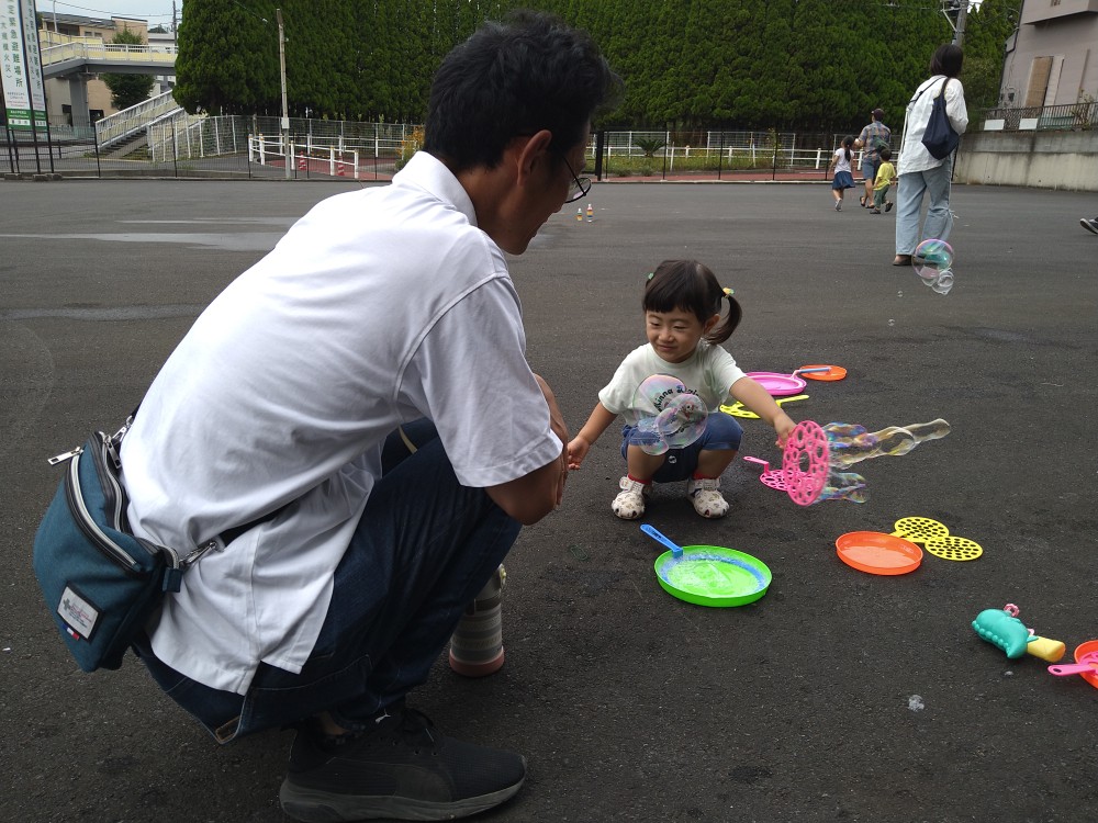 9月28日(土)やっと猛暑から解放されて外で活動するには良い季節になりました。たくさんの親子連れの方々の参加があり、広域避難場所にてシャボン玉、水鉄砲、コマ回しなどで遊ばれていました。今回もボランティアの方々からの差し入れの品々や手作り弁当の配布があり、前回と同じように早雲閣にて配布されたお弁当とバイキング形式のお惣菜を各自お皿に盛りつけて召し上がっていました。次回は10月26日(土)ハロウィンの会です。「ゆめちゃんの会」は村岡子育て応援隊の運営です。お問い合わせは「ゆめちゃんの会」070-3315-2419です。