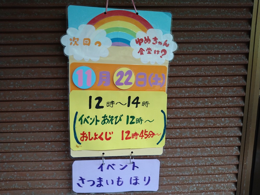 10月25日(土)10月と思えないほどの寒さと雨天の中、たくさんの親子連れの方々の参加がありました。今回はハロウィーンの会ということで、仮装した子供達の参加がありました。ボランティアの方々とじゃんけんやあっち向いてホイをしてお菓子をいただいてました。今回もたくさんの差し入れがありました。また手作り弁当、豚汁の配布もありました。次回は11月22日(土)さつまいも掘りの会です。「ゆめちゃんの会」は村岡子育て応援隊の運営です。お問い合わせは「ゆめちゃんの会」070-3315-2419です。