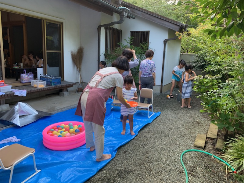 台風の予報にもかかわらず集まった子供達、元気に水遊びして気持ち良さそう。