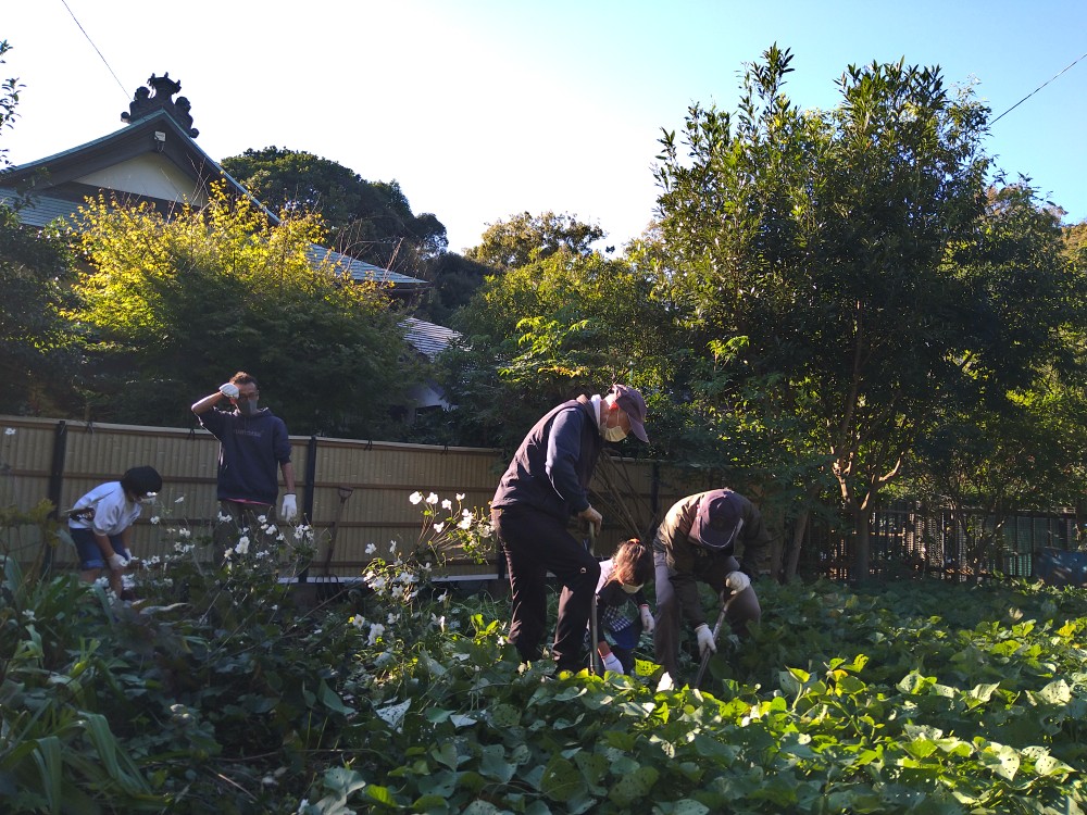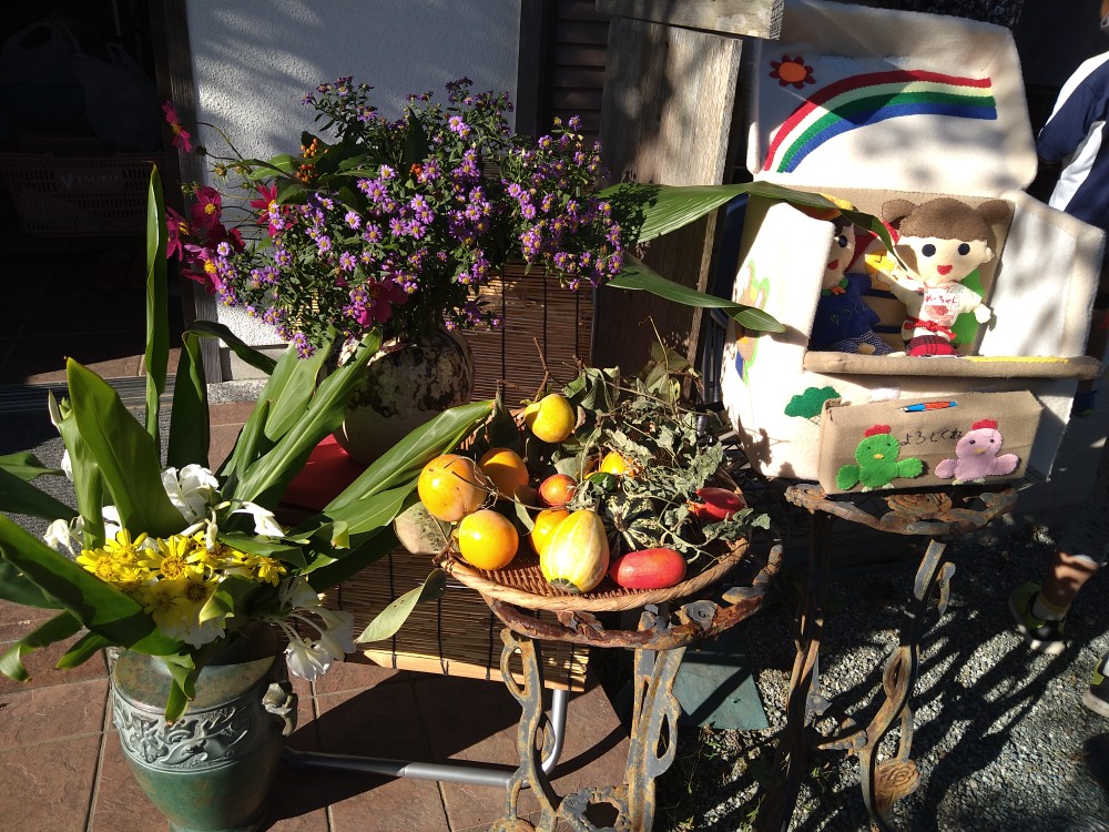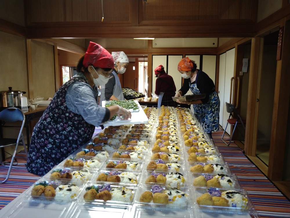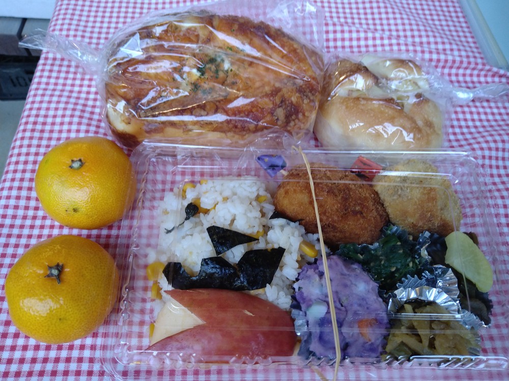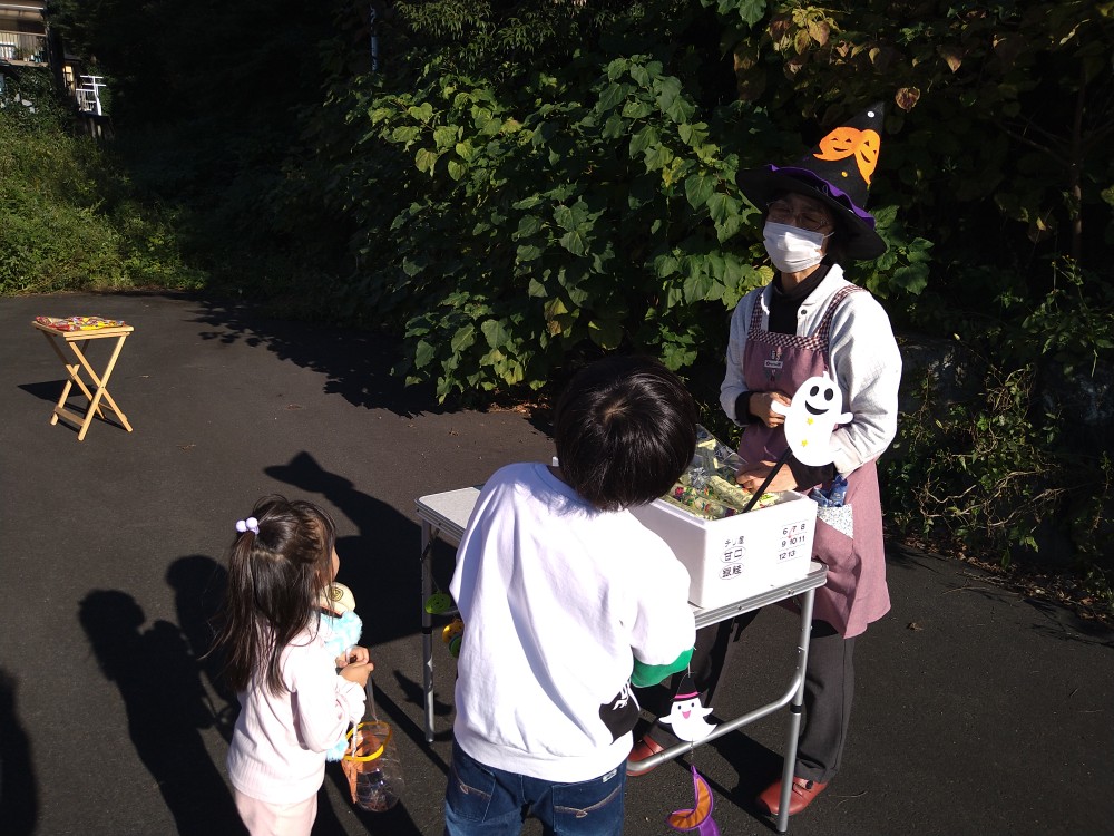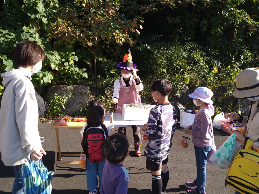 今回のゆめちゃん食堂は、ハロウィンということで、いろいろな催しが企画されていました。サツマイモ掘りの体験もありました。今回よりボランティアの皆さんの手作り弁当が復活し、差し入れのパンや果物、自分達で掘ったお芋などたくさんの品々が配られていました。また、天嶽院の広域避難場所では子供達が、ハロウィンの仮装をしたボランティアの方々とジャンケンをしてお菓子をもらうなど楽しそうでした。天候にも恵まれ、大勢の方が参加されてました。今回も感染対策をしっかりされた中での開催でした。