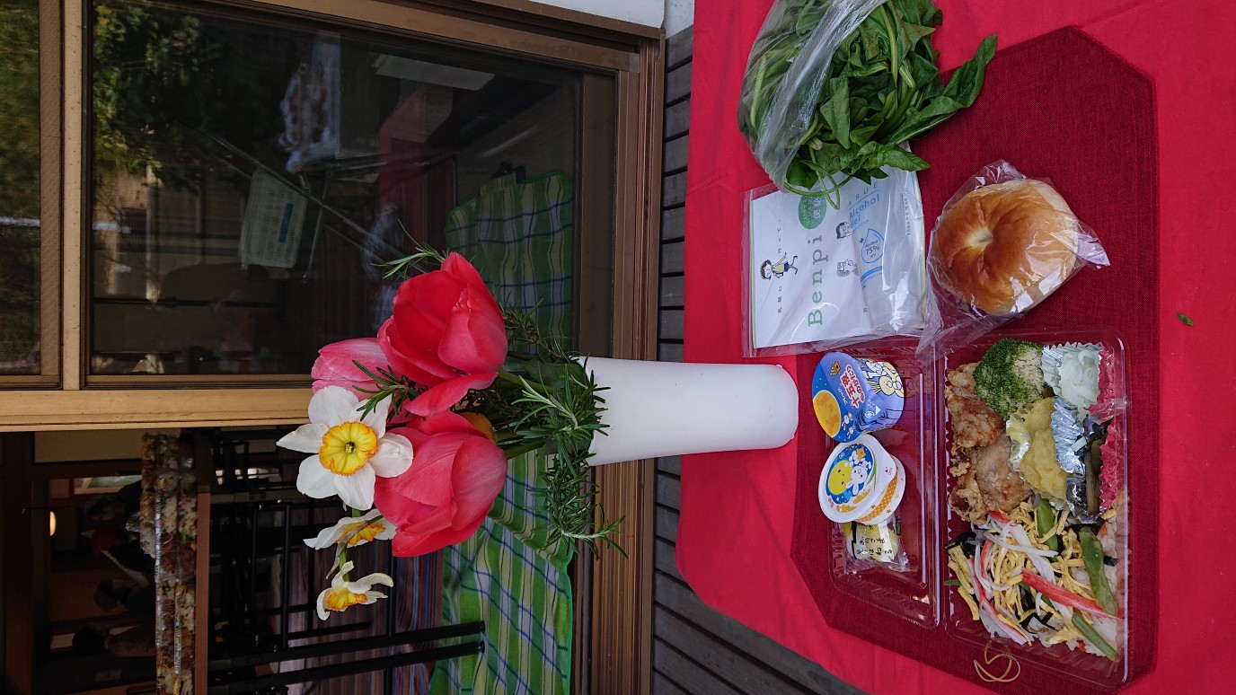 差し入れの品々、手作りのお弁当の配布とおしるこのおふるまいがありました。