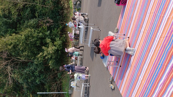 天嶽院広域駐車場にテーブルと、ビニールシートを敷いて食べていただきました。