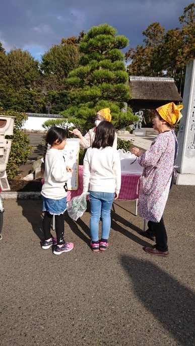 風の強い中来てくださった方々に、ボランティアの方が手作りのちらし寿司、デザートなどを配られてました。